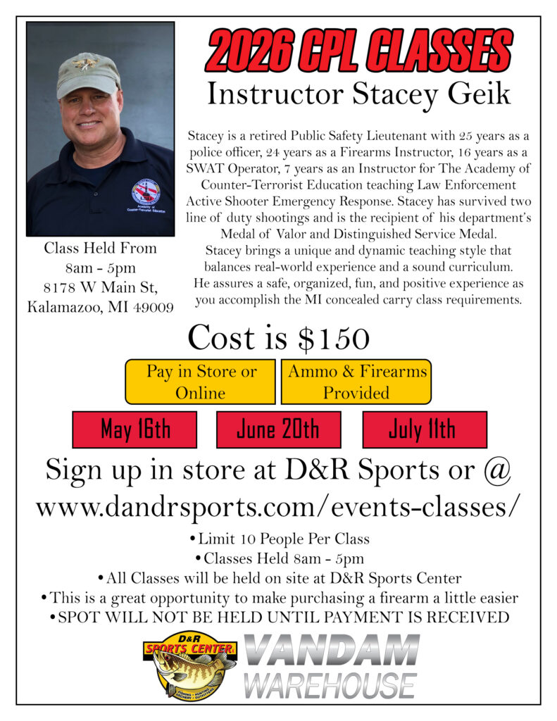 Welcome to our Events & Classes Page – We host a myriad of events and classes throughout the year – from Hunter’s Safety & CPL Courses to multiple day savings events, D&R Sports Center Always has something on our calendar throughout the year.